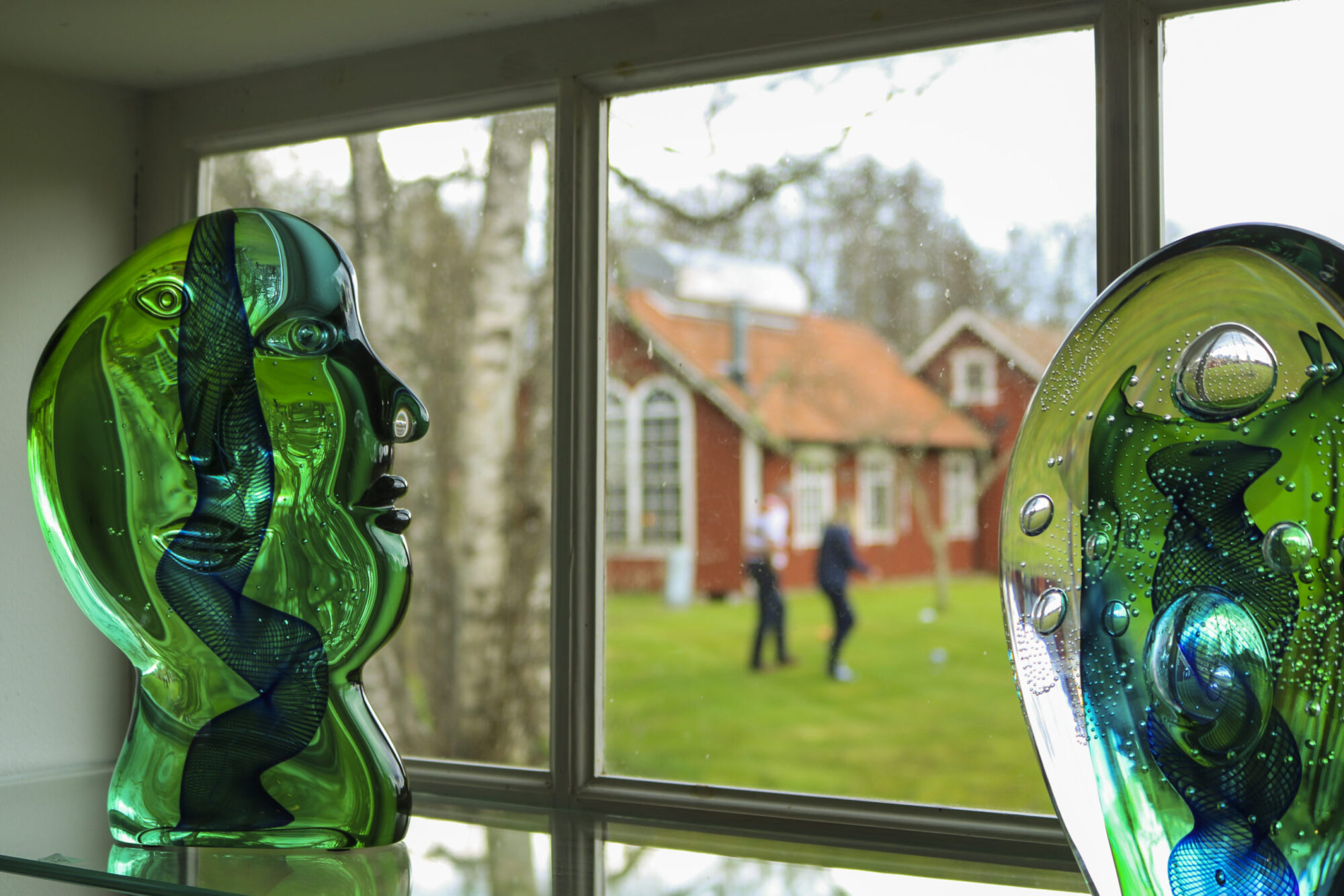I en del av en gammal lada hittar ni glasbutiken med en liten utställningshall. Här kan du både handla andrahandssortering och förstklassiga unikat. Om det är obemannat när ni kommer till vackra Transjö är det bara att ringa så kommer en av mästarna och möter upp.