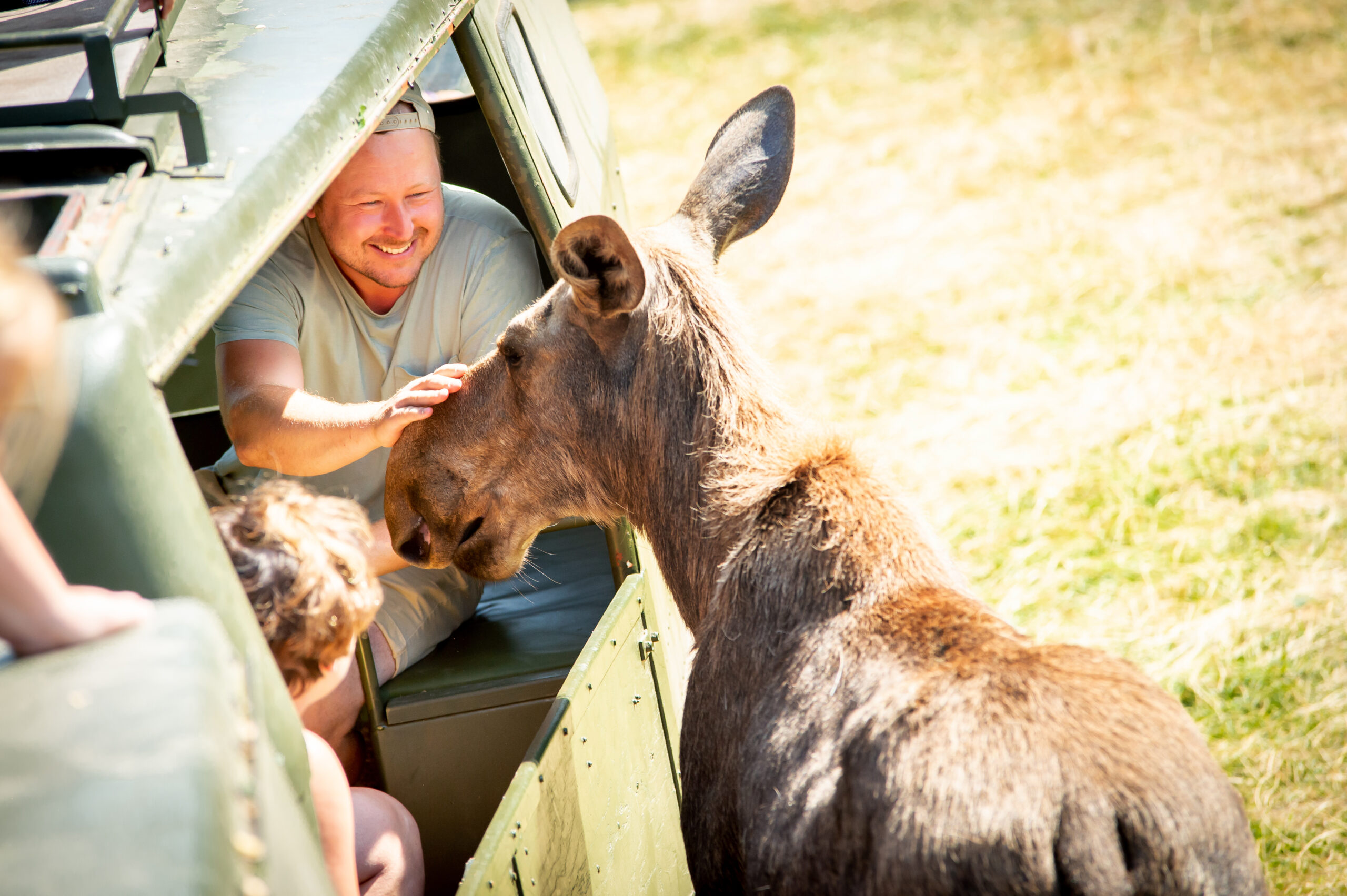 Delta i en guidad tur genom djurens naturliga omgivningar på en traktor och vagn. Beundra de fritt strövande rådjuren i inhägnaden och delta i utfodring, kelning och imponeras av älgarna. Och om du är tillräckligt modig kan du till och med få en älgpuss!