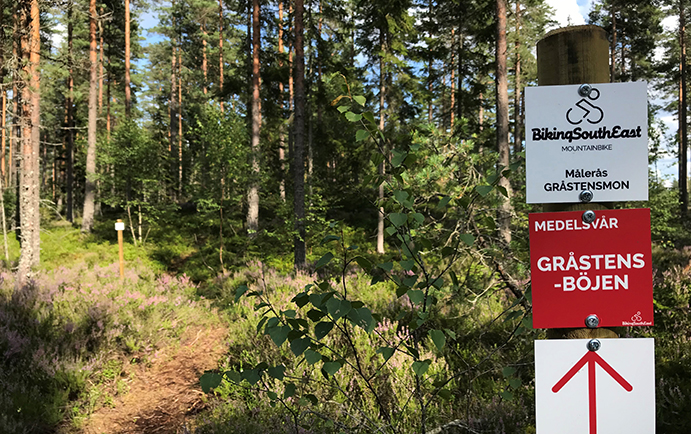 Bei Västervik liegen die MTB-Trails von Karstorp, die Tempo bieten und Technik verlangen. Das Gelände besteht aus Wald, Felsen und steilen Hängen. Am Beginn des Trails gibt es einen Pumptrack, wo man noch an seiner Technik feilen kann.