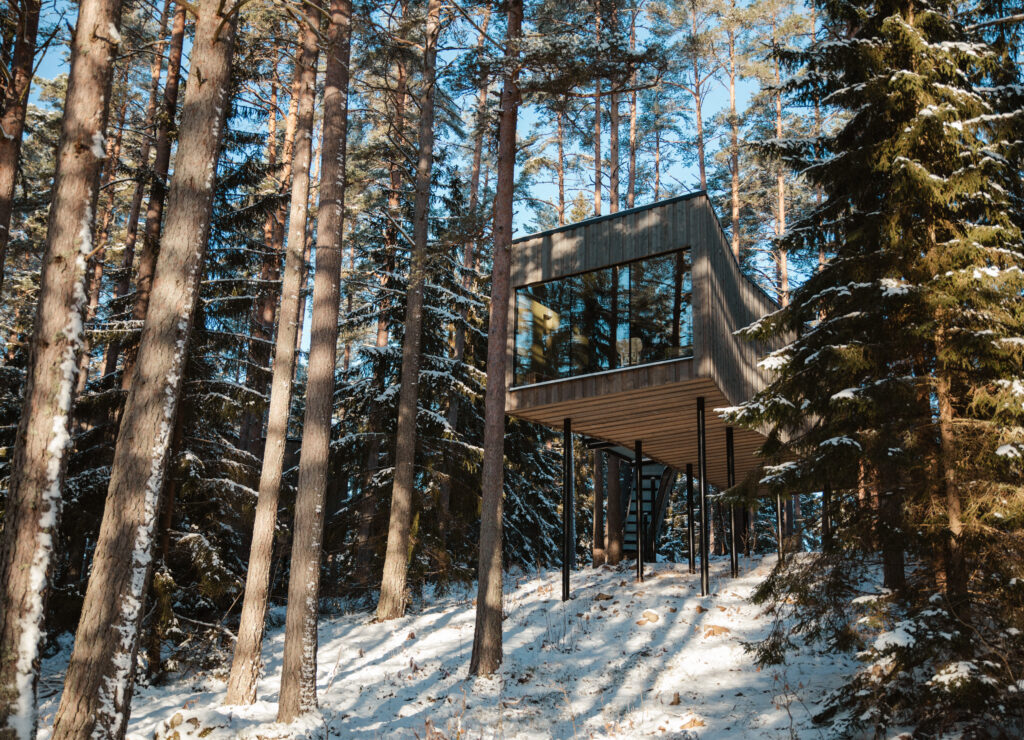 Par hos Trakt Forest Hotel i vintrig miljö.