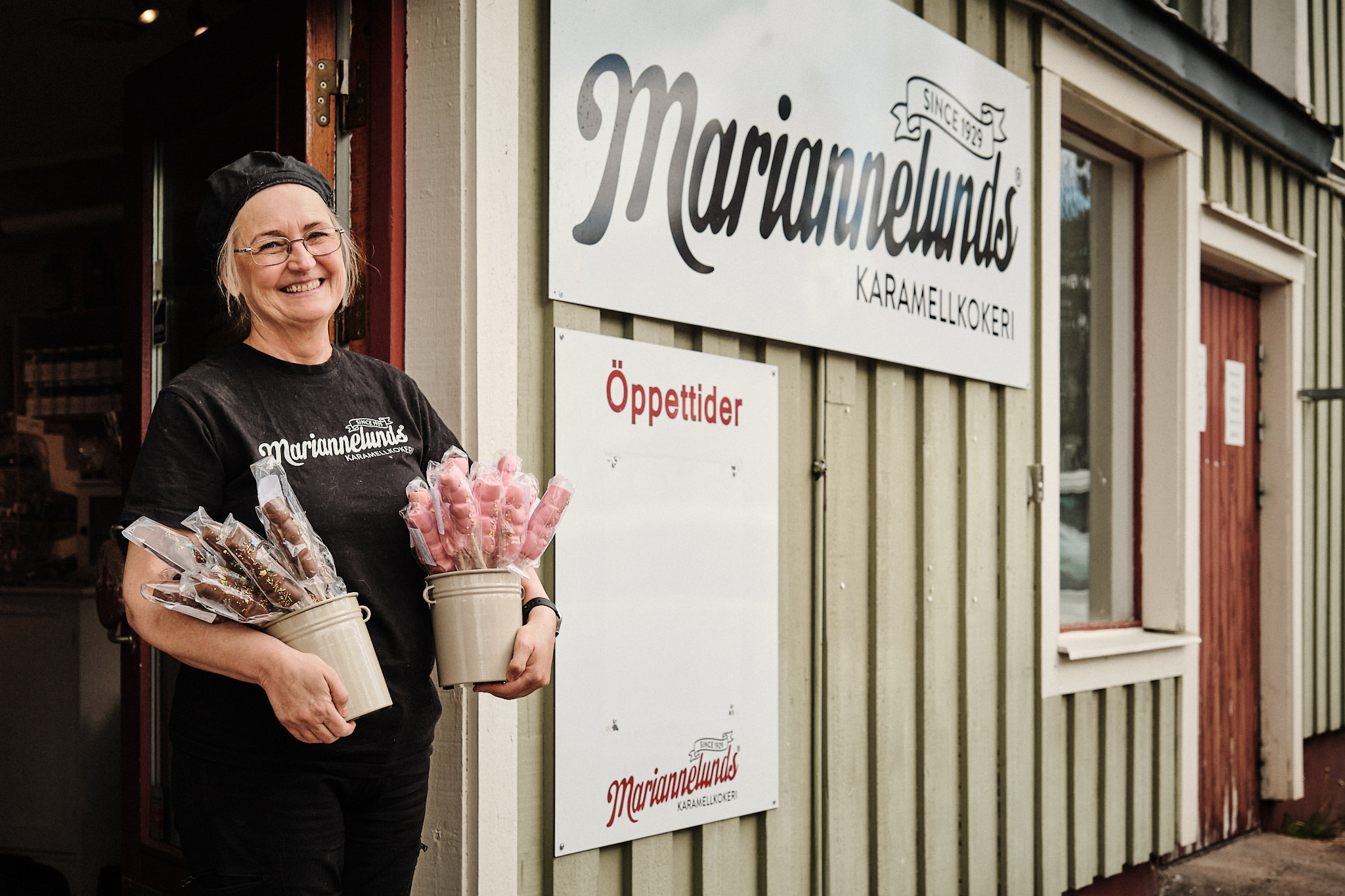 Unsere Produktion erfolgt von Grund auf nach handwerklichen Methoden und umfasst rund 40 verschiedene Sorten Bonbons, Lutscher und andere Süßigkeiten. Außerdem stellen wir unseren beliebten Senf nach eigenem Rezept her. Der Verkauf erfolgt sowohl im Fabrikladen in Mariannelund als auch auf verschiedenen Märkten und Handwerksmessen in ganz Schweden.