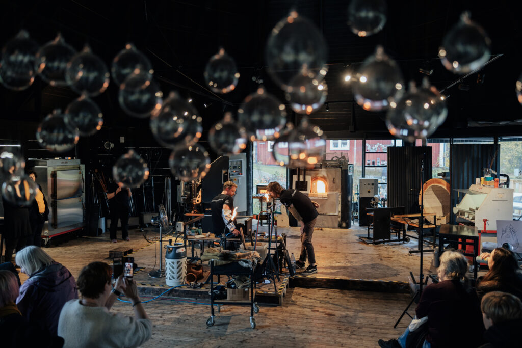 Mouth-blown glass is one of the most well-known craft traditions in Sweden. What we know as the Kingdom of Crystal is nestled in the forests of Småland between Växjö and Kalmar. Here, there are thirteen different glassworks and studio hot shops, each with its own distinct features. Everything from the largest and oldest Kosta glassworks to small studio hot shops with one or two skilled glassmakers who often are also their own designers.