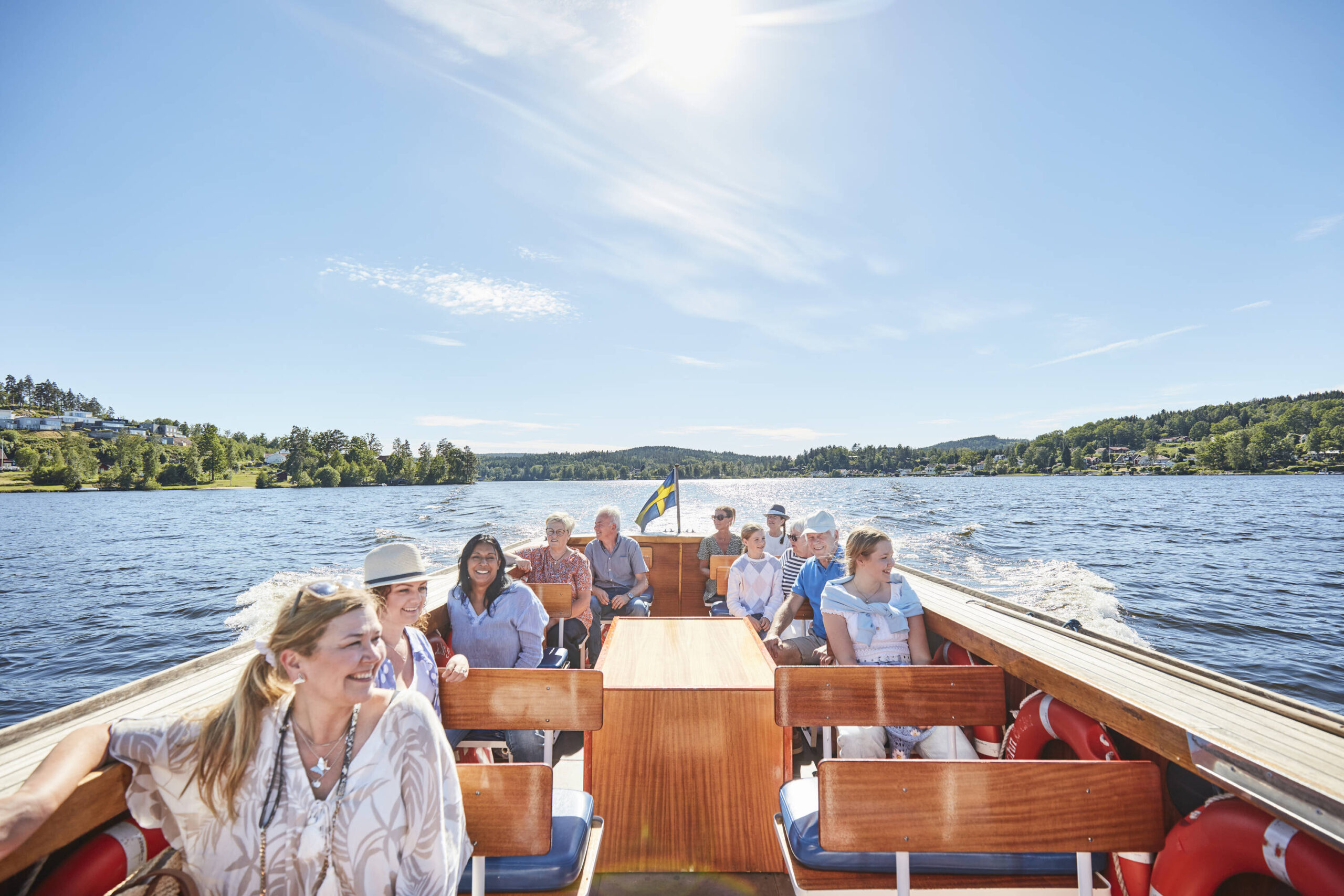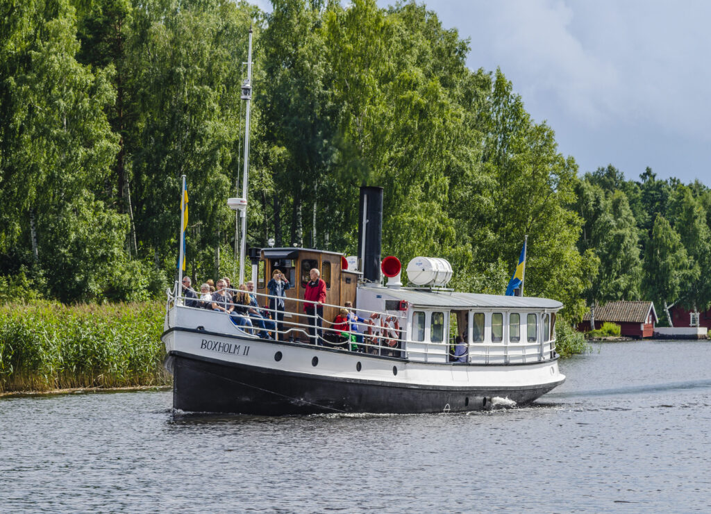 Since 1904, Lake Sommen has been served by the fine old S/S Boxholm II, one of Sweden’s last wood-fired steamships still in operation. Join us on a cruise, theme trip or storytelling tour surrounded by beautiful greenery.