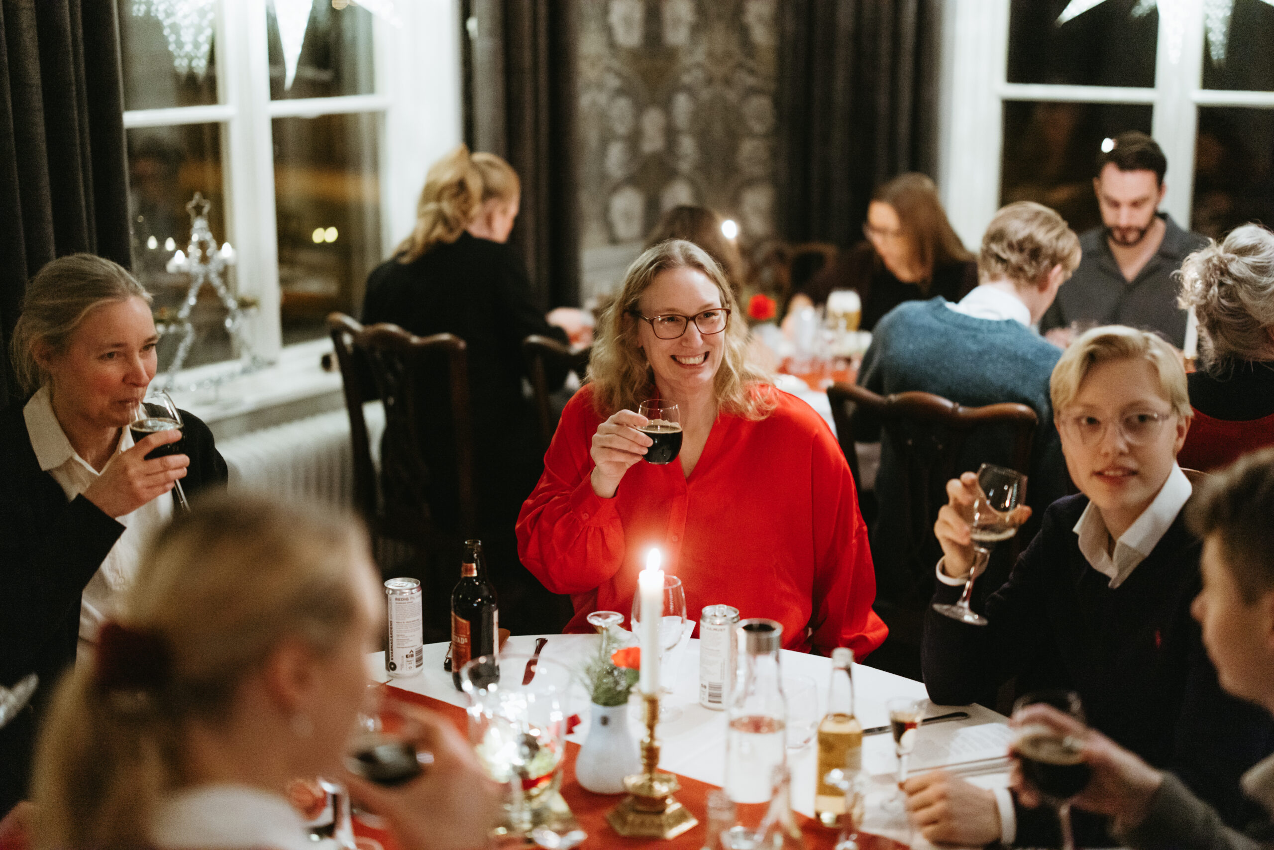 The experience at Bauergården begins outside by the light of torches, overlooking the dark waters of Lake Bunn with a warming cup of mulled wine. This is followed by a classic Christmas buffet and a large dessert table, which on certain evenings is enhanced with live music.