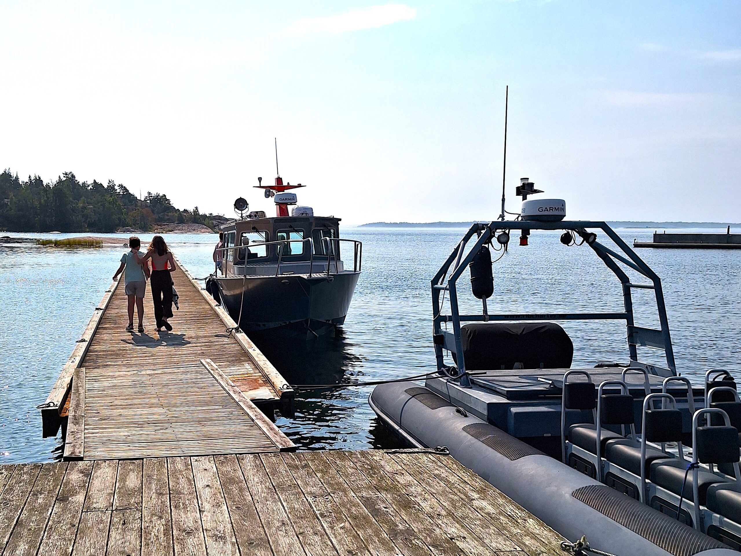 En net als in het safaripark blijken ook hier de ogen van onze oudste het beste, want tussen de stenen op een eilandje ziet ze een groepje zeehonden liggen! Daarna zien we ook nog een aantal kopjes boven water komen, een prachtig gezicht. Onderweg hebben we een lunchstop bij Idö skärgårdskrog, een restaurant met fantastisch uitzicht op een mooi eilandje.