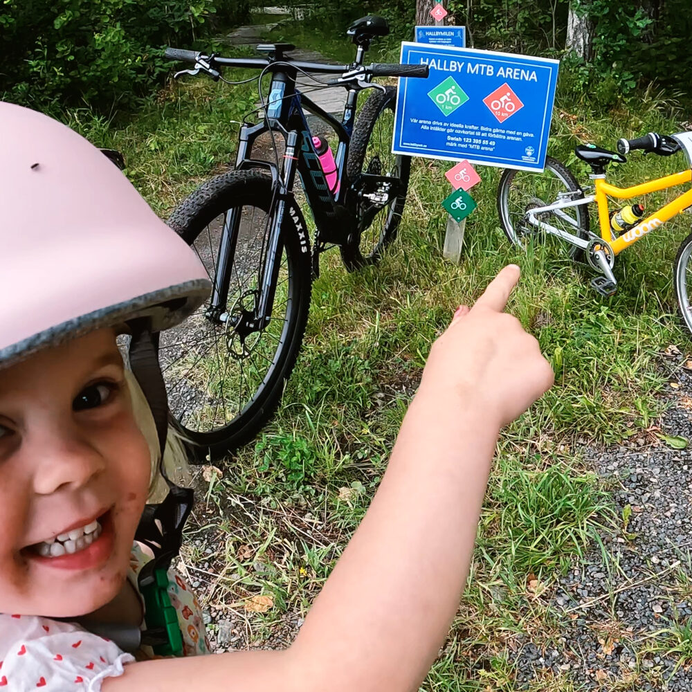Sedan dess har det hänt mycket och idag finns här flera roliga banor och välbyggda utmaningar. En pumptrack och en bana som byggts särskilt för barn och ett milslångt spår med röd markering är några saker som gör Hallby till ett riktigt bra ställe för familjen. I närheten ligger Axamosjön – perfekt för ett dopp.
