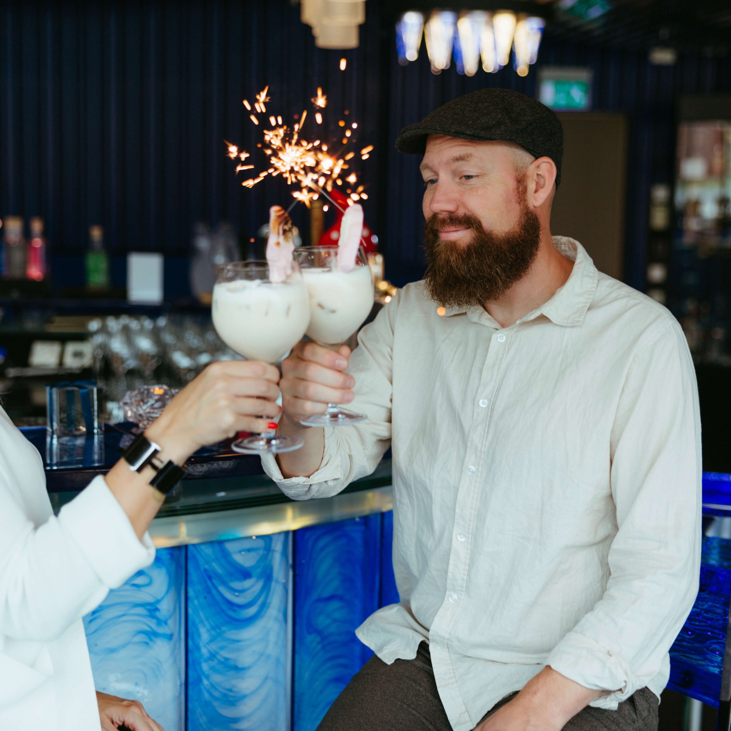 Glödande glas, julkulor, ett glasklart julbord. Ett hotell fyllt av konstglas och en bar helt i blått, svävande glas. Och finalen – cocktail med gnistrande tomtebloss och bränd skumtomte. Följ med Tove och Richard